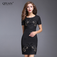 Kruidvat2017春夏新款改良旗袍裙圆领拉链短袖复古重工绣花镂空连衣裙B058