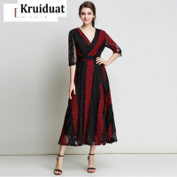 YIBUSHENG 美式复古设计感挂脖撞色连衣裙女新款修身包臀裙子