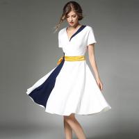 YIBUSHENG300斤大码拼接假两件短袖连衣裙女季胖MM撞色性感辣妹收腹短裙
