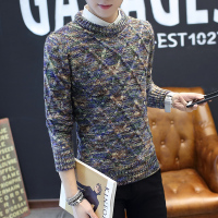 青年男士套头针织衫韩版提花马海毛圆领毛衣男式修身长袖纯棉毛衫