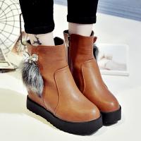 秋冬高跟鞋女2017新款韩版百搭坡跟毛毛靴子内增高短靴加绒女鞋子
