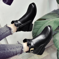 小跟短靴春秋女2017新款百搭英伦风平底棉鞋学生二棉鞋原宿女靴子