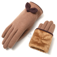 2017秋冬新款双层加绒羊毛手套女士韩版蝴蝶结保暖触屏分指手套