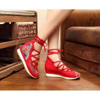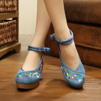 2017新款老北京嵌钻绣花鞋秋季运动旅游女布鞋系带防滑高跟单鞋舞蹈女鞋