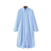 女装2017秋季新款蓝色条纹宽松衬衫裙连衣裙 浅蓝色 均码
