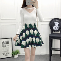 珂依舍2017秋装新款2017秋季新款蓬蓬裙a字裙时尚套装长袖针织衫半身裙两件套女
