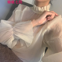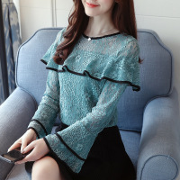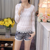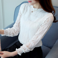 薇侣2017新品长袖上衣女网纱蕾丝衫打底新款小衫韩版百搭雪纺