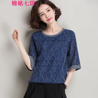 短袖雪纺衫女士夏装2018新款韩版收腰显瘦遮肚子仙露肩蕾丝上衣