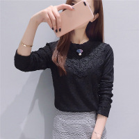 珂依舍2017秋装新款2017冬装新款韩版修身长袖加绒加厚蕾丝打底衫百搭蕾丝衫