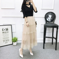瑾汐2018新款韩版中长款蕾丝边拼接网纱裙高腰显瘦a字裙