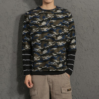 2017新款秋季男士长袖卫衣韩版圆领套头上衣t恤迷彩印花休闲潮流2017新款