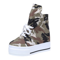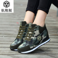 2017秋冬季新款隐形内增高帆布鞋女迷彩休闲运动坡跟系带高帮女鞋