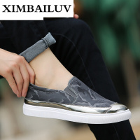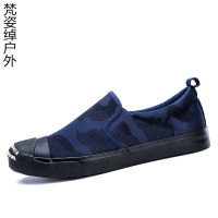 路蒙卡帝2017新款男鞋迷彩印花透气布鞋英伦时尚潮流男帆布鞋一脚蹬男板鞋