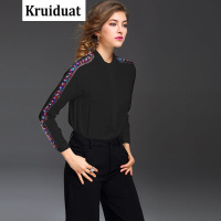 Kruidvat2017春季新款钉珠镶钻立领休闲长袖真丝上衣女声衬衫B084