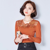 薇侣2017新品秋装新款镶钻网纱拼接蕾丝打底衫长袖修身百搭
