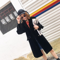 水貂领中长款羊剪绒大衣女冬新款镶钻荷叶边拼花羊毛皮草外套