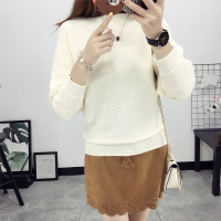 薇侣2017新品韩版圆领针织衫秋装新纯色套头衫短款女装宽松长袖毛衣潮