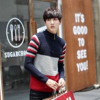 冬天男士2017新毛衣韩版修身半高领条纹针织衫青年冬季男装毛衣潮