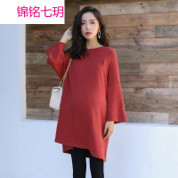 锦铭七玥孕妇装秋冬018新韩版孕妇毛衣中长纹针织衫打底上衣大码