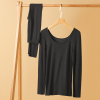 5A抑菌保暖内衣女上衣带胸垫方领磨毛秋衣高弹均码内搭外穿保暖衣