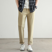 2026 春夏卡其色肌理休闲裤男 抽绳锥形长裤 小标装饰卷边九分裤