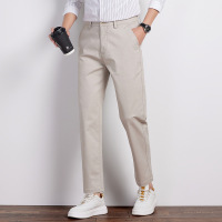 男士卡其色阔腿休闲裤 纽扣腰头设计 明线装饰 春夏款 宽松长裤男