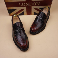 韩版皮鞋男士潮流男鞋发型师英伦风内增高套脚厚底松糕鞋春季复古做旧鳄鱼纹