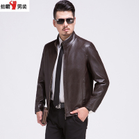勎霸 2017新款春秋季皮衣男士中年商务皮夹克薄款秋装立领外套爸爸装