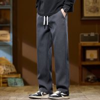国潮男裤子秋冬潮流百搭舒适松紧腰直筒裤加绒加厚保暖休闲裤男士