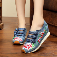 2017新款2017春秋新款老北京布鞋绣花鞋橡胶厚底圆头包脚盘扣舒适休闲单鞋