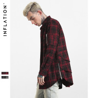 【硬汉风格】2018春季欧美高街MA-1口袋侧拉链三刺绣格仔衬衫男