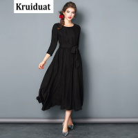 YIBUSHENGgusty欧美风圆环扣镂空低胸吊带过膝长裙性感辣妹露背开叉连衣裙