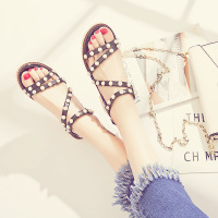 罗马凉鞋女夏学生2017新款百搭韩版平底凉鞋女鞋子夏粗跟英伦