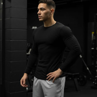 春秋季长袖T恤男士圆领运动跑步健身服弹力肌肉训练休闲打底上衣