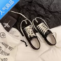SUNTEK黑色小香风分趾饼干鞋2023年春秋新款系带平底休闲帆布鞋女猪蹄鞋