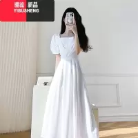 YIBUSHENG小个子白色方领连衣裙季2024新款茶歇法式气质梨形身材仙女长裙