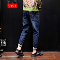 UYUK秋冬新款男士牛仔裤休闲大码百搭小脚裤水洗简约束脚裤青少年潮流裤子