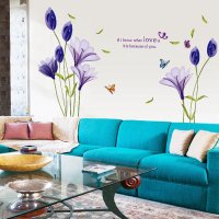 居梦坞 客厅卧室沙发背景墙贴 可移除浪漫紫色百合花马蹄莲 墙贴纸