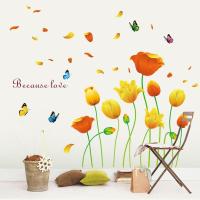 墙贴画客厅家居装饰浪漫花卉可移除墙贴客厅电视背景墙贴画卧室床头温馨贴纸 郁金香 AY9109