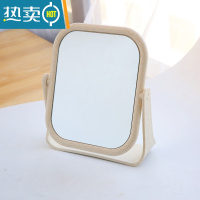 敬平创意简约台式化妆镜欧式高清双面浴室梳妆镜便携宿舍桌面旋转镜子 2920 方形米色便携式用镜