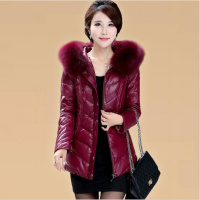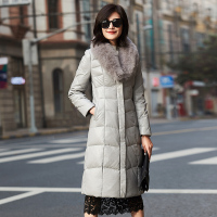 冬装真皮羽绒服女中长款海宁皮衣大码狐狸毛领修身绵羊皮外套CYDDWQE