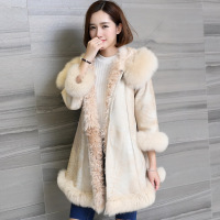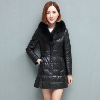 2018冬季海宁真皮皮衣女中长款狐狸毛领皮草皮羽绒服外套