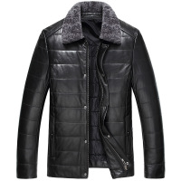 2017海宁真皮皮衣男士羊毛领冬季中年绵羊皮外套黑色