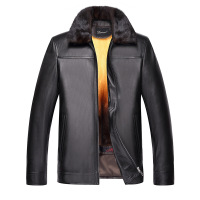 海宁真皮商务休闲皮衣男士绵羊皮羽绒服水貂翻领修身夹克外套