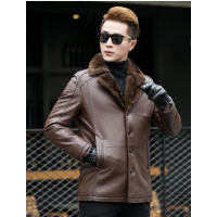 冬季新款真皮皮衣男海宁水貂毛领男装外套皮毛一体男士修身皮夹克真皮皮衣男商务休闲