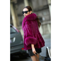 新款女装拼貂水貂狐狸领绵羊皮中长款女装外套 海宁真皮皮衣