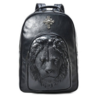 2017新款个性时尚潮男包包潮牌双肩包男潮韩版铆钉狮子头背包创意书包大潮包女登山包大号前袋小狮头(不变形)