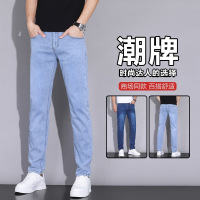 浅蓝水洗潮牌直筒牛仔裤男士弹力商场修身百搭日常休闲牛仔长裤男