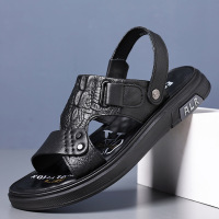 凉鞋男夏季新款男士休闲沙滩鞋头层牛皮凉拖鞋厚底鞋子潮真皮6683