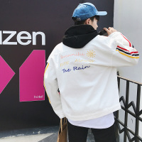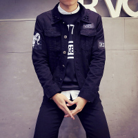 步来褶惠2017秋装新款男装男士外套字母刺绣个性牛仔夹克夏